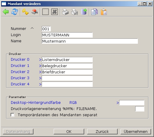 Lassen Sie die Felder Drucker0 leer, außer Sie möchten mandantenabhängige Drucker einstellen. Lesen Sie dann den entsprechenden Abschnitt.