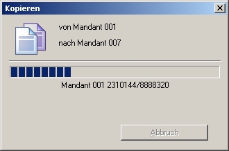 Warten Sie den Kopiervorgang ab. Es werden alle vorhandenen Stammdaten kopiert. Je nach Datenmenge kann das einige Minuten dauern. Auch die Archivierungsregeln werden kopiert.