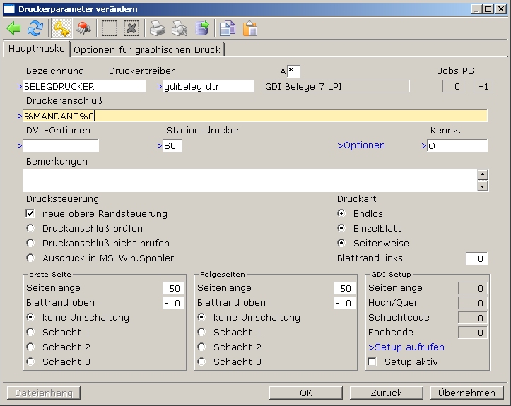 Öffnen Sie die Druckerliste und tragen Sie beim Belegdrucker im Feld Druckeranschluss "%MANDANT%1" ein.
