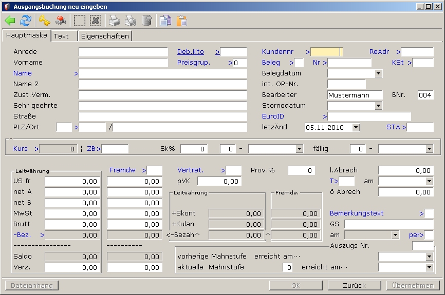 Die Felder letz.Abrech:, am und S Abgerech.: werden vollautomatisch vom Programm ausgefüllt und verwaltet. Verändern Sie die Felder nicht.