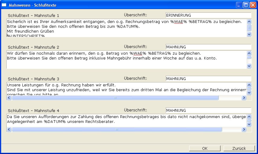 Mahntexte ändern