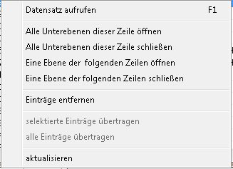Klicken Sie mit der rechten Maustaste auf eine Zeile um mehrere Datensätze auf- oder zuzuklappen. Sie erhalten folgende Auswahlmöglichkeiten: