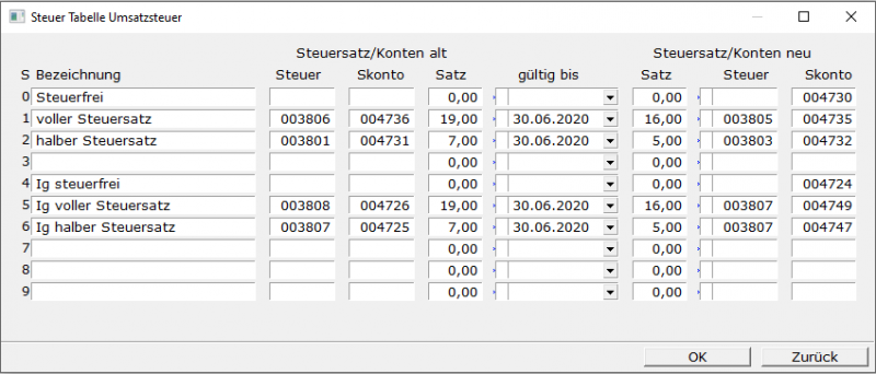 Steuersatz/Konten alt: