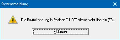 Diese Meldung erhalten Sie wenn das Kennzeichen im Feld PG nicht zu der in der Position vermerkten Mehrwertsteuer passt. Prüfen Sie Ihre Einstellungen. Drücken Sie auf der ersten Position die Taste F3, damit das IFW die Einstellungen korrigieren kann.