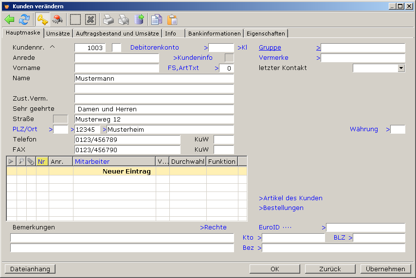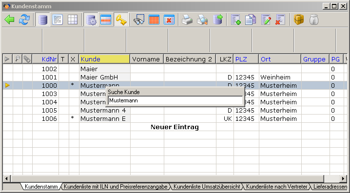 Um die Kundenmaske des markierten Kunden zu öffnen führen Sie einen Doppelklick aus oder drücken Sie [Return].