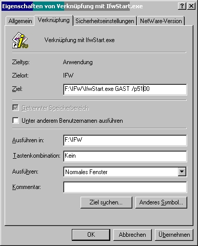 ifwstart.exe GAST /e5100 oder ifwstart.exe GAST /e5101 Für den manuellen Start eines einzelnen Host können Sie auf dem Desktop eine Verknüpfung mit ifwstart.exe anlegen: