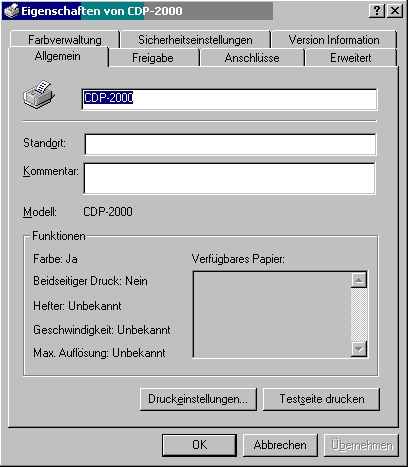 Stellen Sie zuerst fest wie der Drucker unter Windows heißt, indem Sie auf dem Client unter "System| Einstellungen| Drucker" den Namen abfragen. In unserem Beispiel heißt der Drucker "CDP-2000".