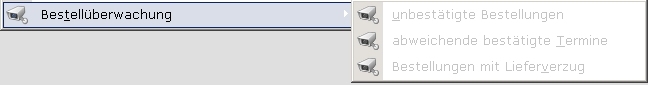 Öffnen Sie über Einkauf| Bestellungen das Bestellmenü. Am Fuß finden Sie die Menüpunkte für die Bestellüberwachung.