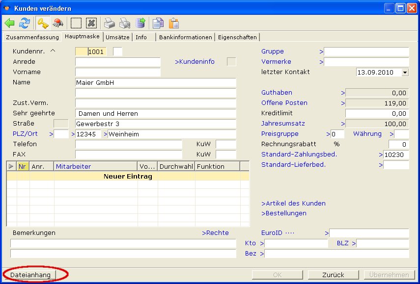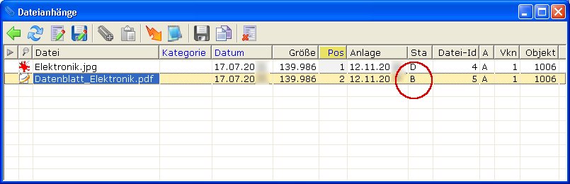 auf den Datensatz. Es öffne sich die Liste der angehängten Dateien. Alternativ klicken Sie auf den Button "Dateianhang" in der geöffneten Maske.