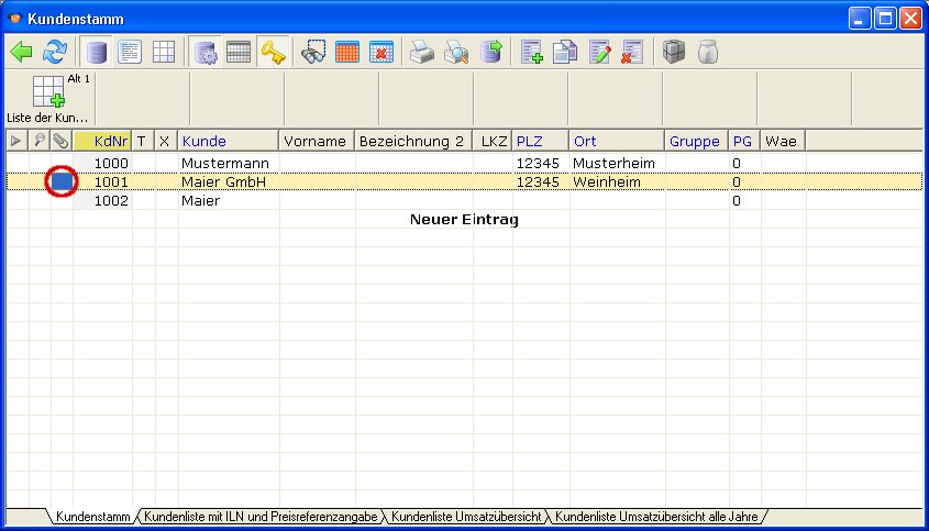 Öffnen Sie die gewünschte AuswahllisteÜbersichtsliste im IFW, (z.B. Kundenstamm) und klicken Sie in der Spalte