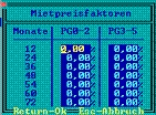Die Felder Faktor1 und Faktor2 enthalten den Prozentsatz aus der zugehörenden Mietpreistabelle. Sie werden nur angezeigt, wenn Sie über die entsprechenden Zugriffsrechte verfügen.