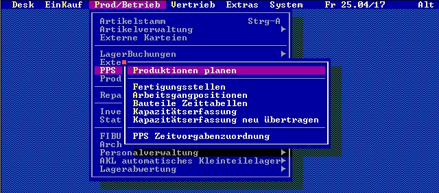 PPS Planung starten: Damit kann die PPS-Planungstafel aufgerufen werden. Sie können auch mit der Taste Return eine Produktion zur Planung in die Planungstafel abrufen.